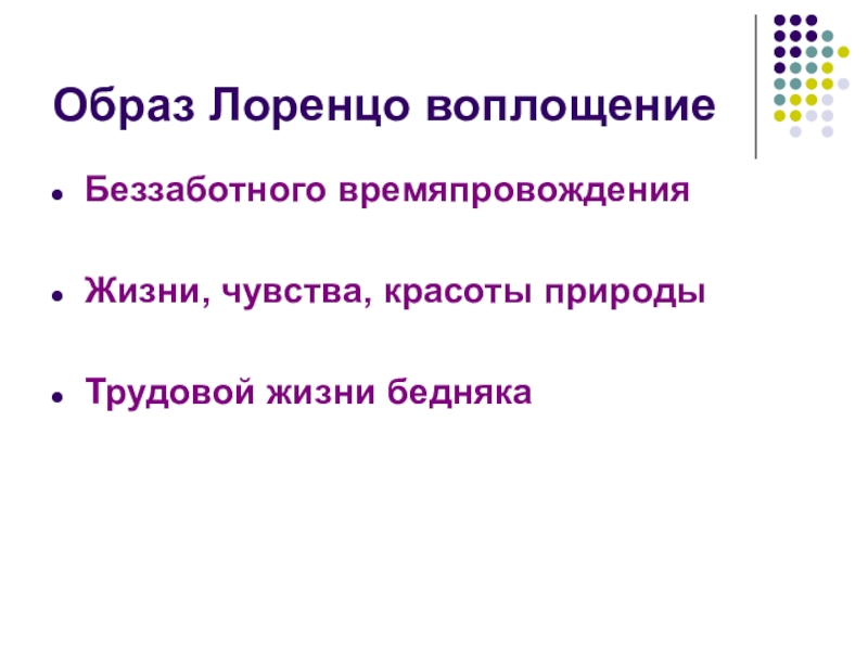 Панорама Неополитанского залива, зарисовка уличного рынка, колоритные образы лодочника Лоренцо, двух абруццских горцев, образ «радостной, прекрасной, солнечной» Италии.