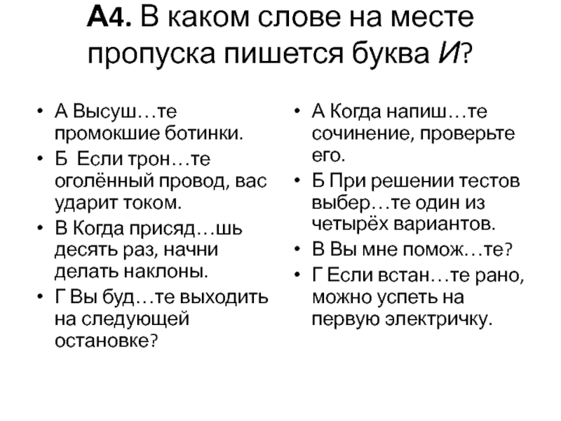 Б При решении тестов выбер…те один из четырёх вариантов.