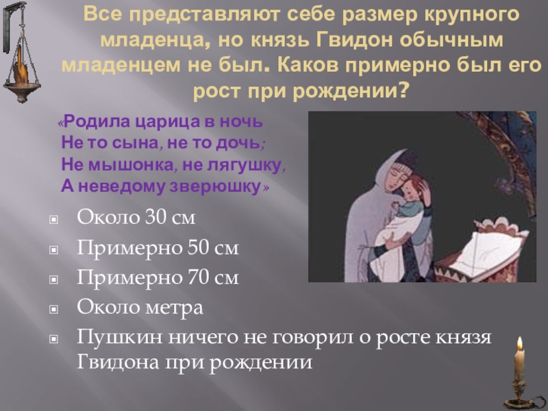Пушкин ничего не говорил о росте князя Гвидона при рождении