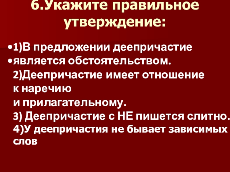 4)У деепричастия не бывает зависимых