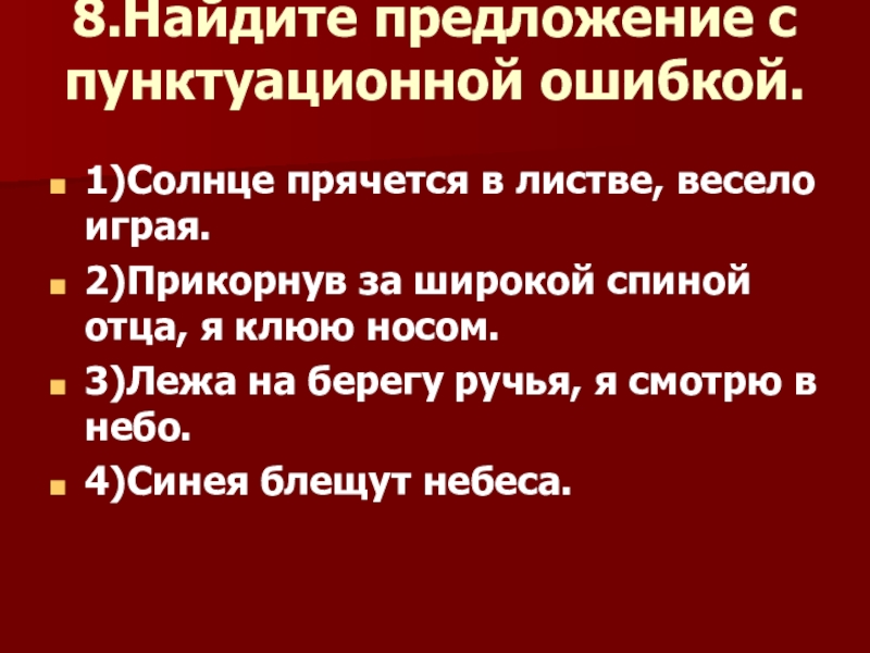 Слайд 88.Найдите предложение с пунктуационной ошибкой.