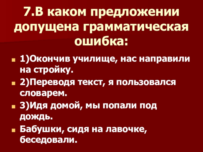 7.В каком предложении допущена грамматическая ошибка: