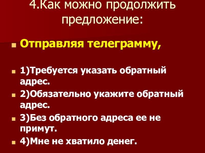4.Как можно продолжить предложение: