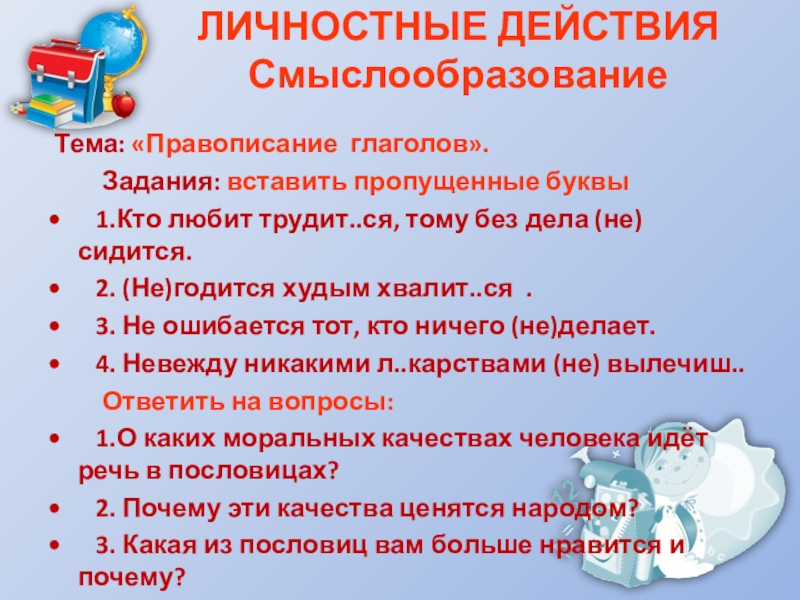 Слайд 3ЛИЧНОСТНЫЕ ДЕЙСТВИЯ