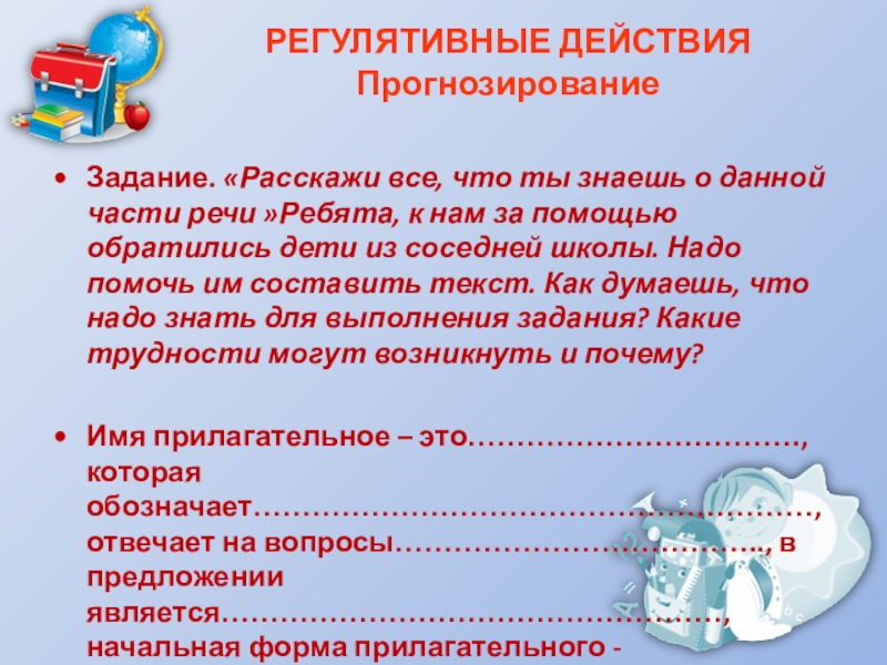 Задание. «Расскажи все, что ты знаешь о данной части речи