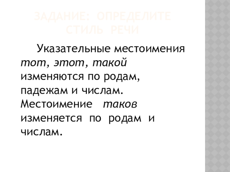 Слайд 12ЗАДАНИЕ: ОПРЕДЕЛИТЕ СТИЛЬ РЕЧИ