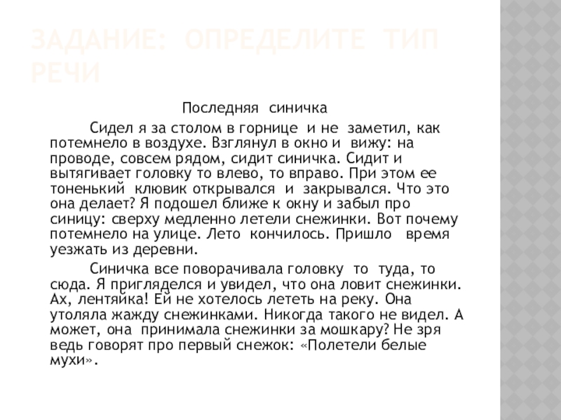 Слайд 7ЗАДАНИЕ: ОПРЕДЕЛИТЕ ТИП РЕЧИ