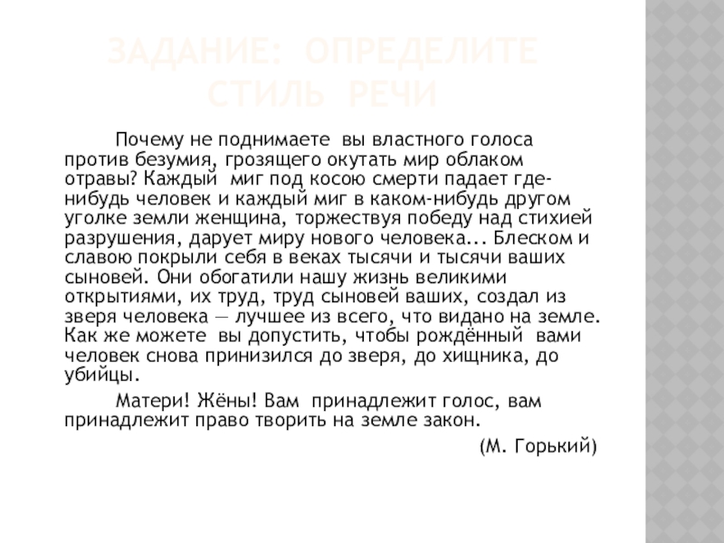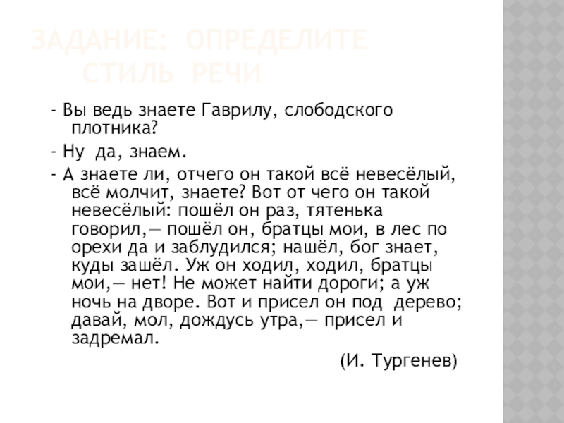 Слайд 9ЗАДАНИЕ: ОПРЕДЕЛИТЕ СТИЛЬ РЕЧИ
