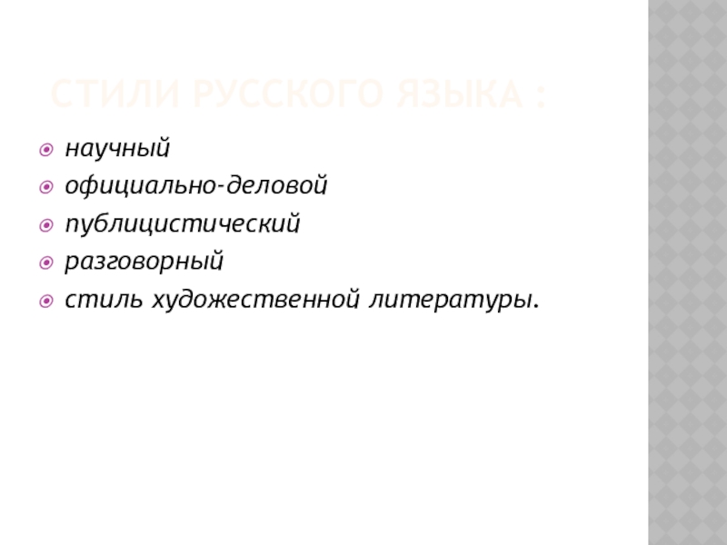 Слайд 8 СТИЛИ РУССКОГО ЯЗЫКА :