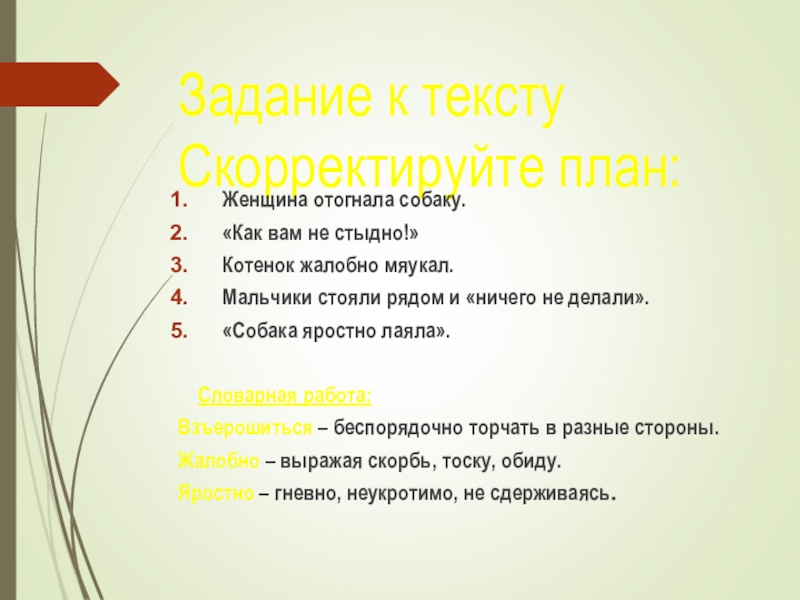 передние лапы. Прямо перед ней, прижавшись к забору, сидел маленький, взъерошенный котенок. Он широко раскрывал рот и жалобно мяукал. Неподалеку стояли два мальчика и ждали, что будет.