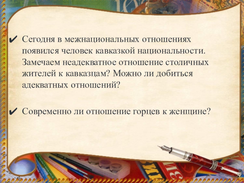 Сегодня в межнациональных отношениях появился человек кавказкой национальности. Замечаем