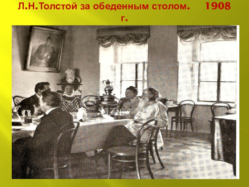 Слайд 29Л.Н.Толстой за обеденным столом. 1908 г.