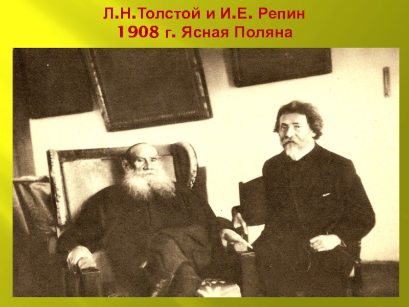 Слайд 23Л.Н.Толстой и И.Е. Репин 1908 г. Ясная Поляна