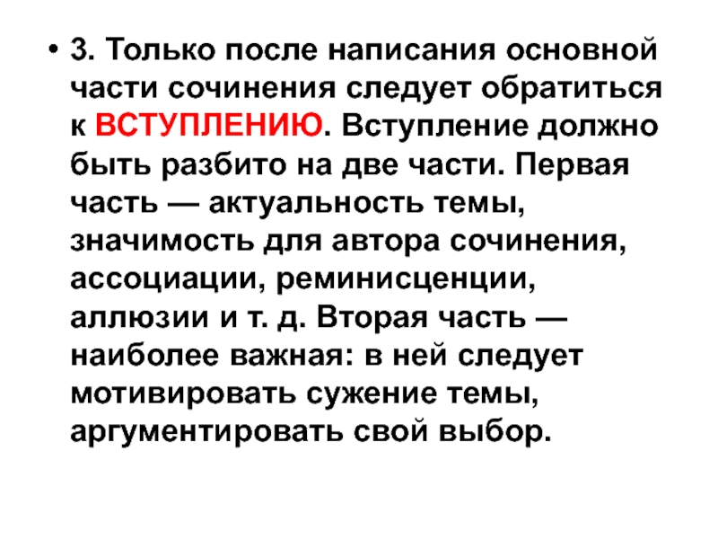 Слайд 203. Только после написания основной части сочинения следует обратиться к ВСТУПЛЕНИЮ.
