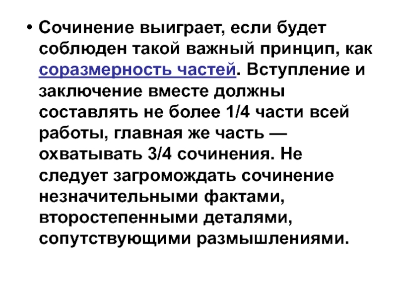 Слайд 14Сочинение выиграет, если будет соблюден такой важный принцип, как соразмерность частей.