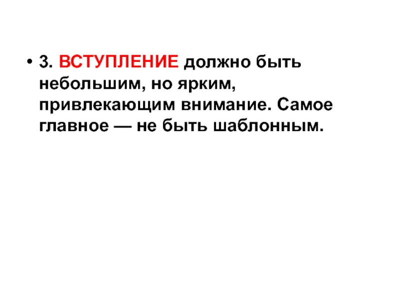Слайд 53. ВСТУПЛЕНИЕ должно быть небольшим, но ярким, привлекающим внимание. Самое главное
