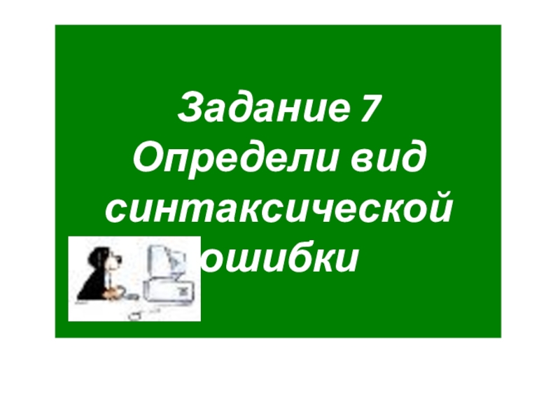 Слайд 1Задание 7 Определи вид синтаксической ошибки
