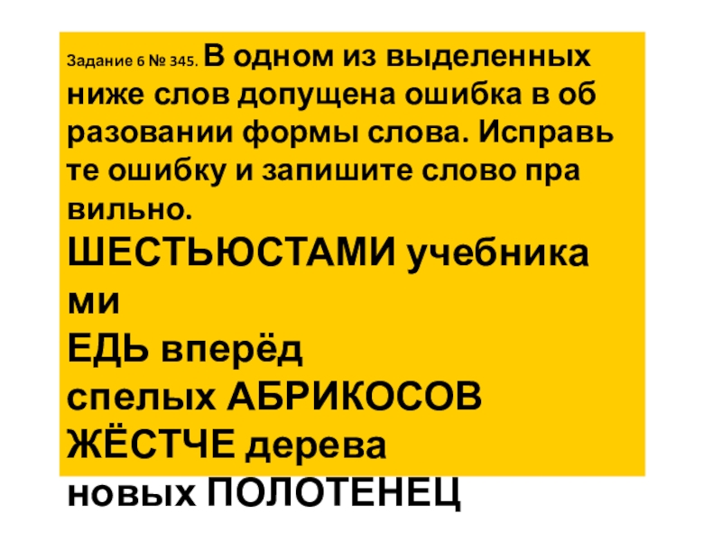 Слайд 9Задание 6 № 345. В одном из выделенных ниже слов допущена ошибка в образовании