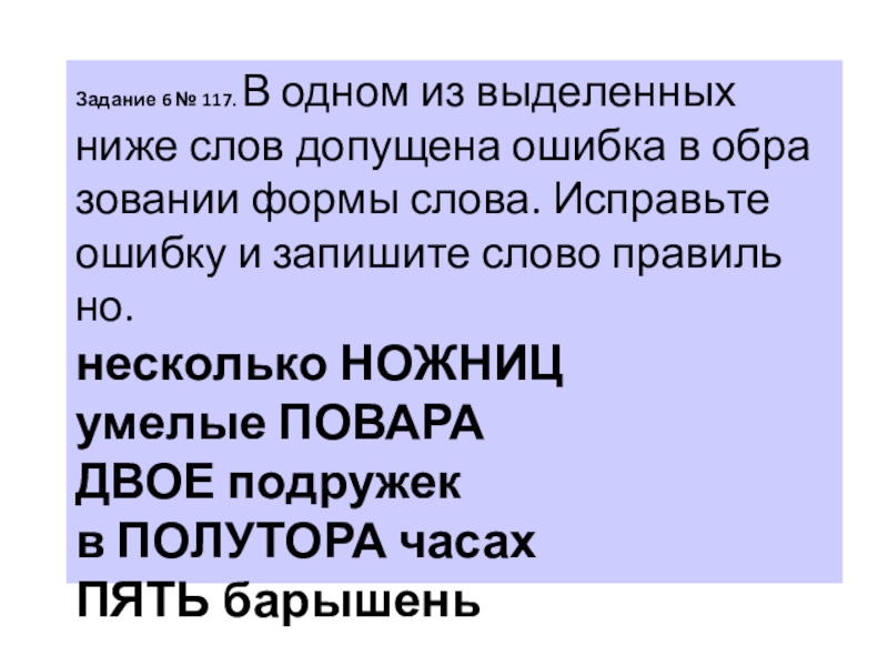 Слайд 3Задание 6 № 117. В одном из выделенных ниже слов допущена ошибка в образовании