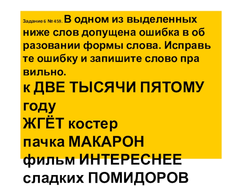 Слайд 12Задание 6 № 459. В одном из выделенных ниже слов допущена ошибка в образовании