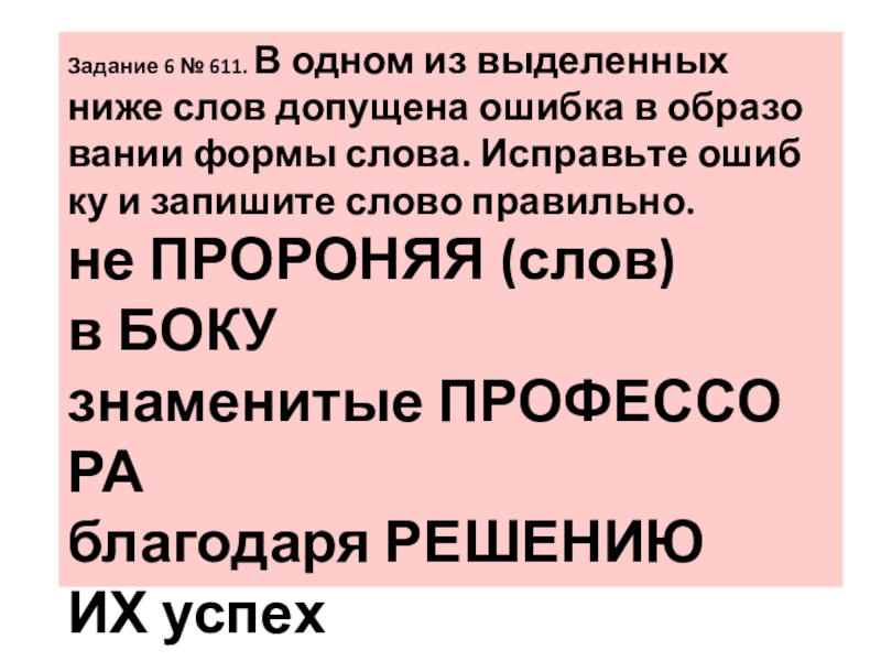 Слайд 16Задание 6 № 611. В одном из выделенных ниже слов допущена ошибка в образовании