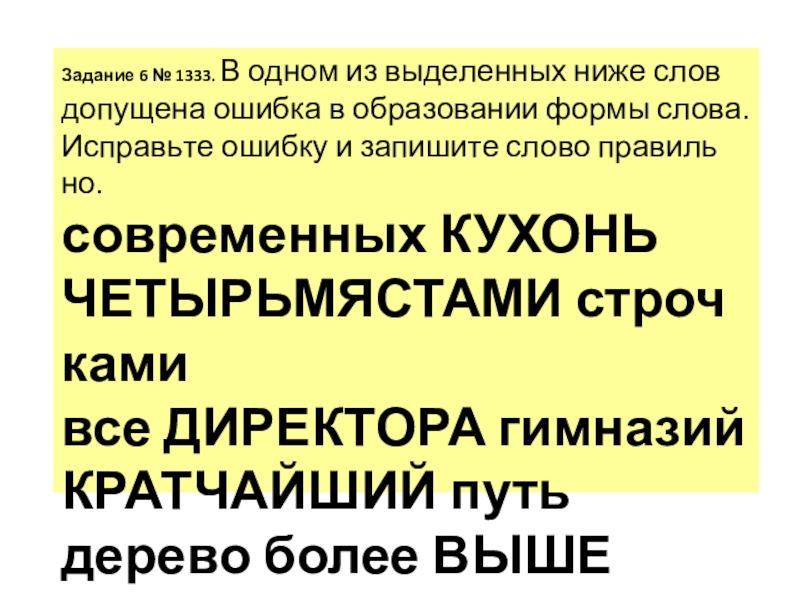 Слайд 35Задание 6 № 1333. В одном из выделенных ниже слов допущена ошибка в образовании