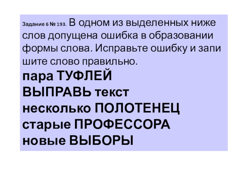 Слайд 5Задание 6 № 193. В одном из выделенных ниже слов допущена ошибка в образовании