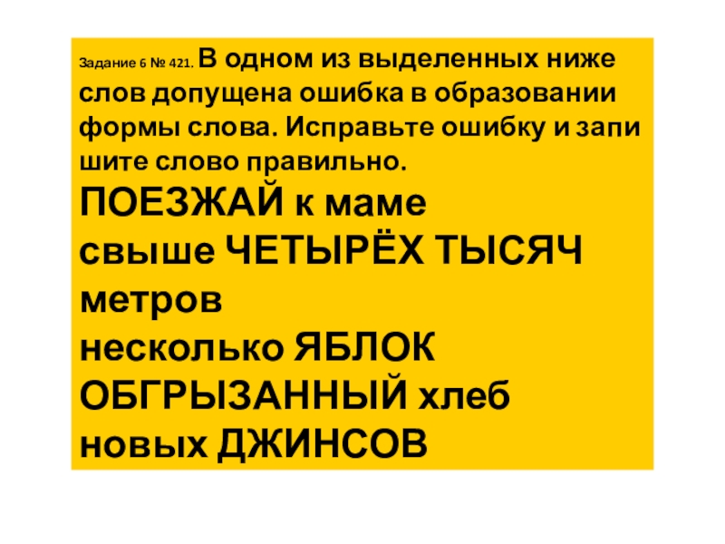 Слайд 11Задание 6 № 421. В одном из выделенных ниже слов допущена ошибка в образовании