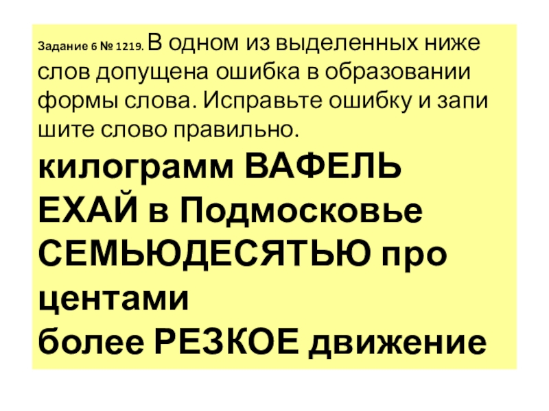 Слайд 32Задание 6 № 1219. В одном из выделенных ниже слов допущена ошибка в образовании