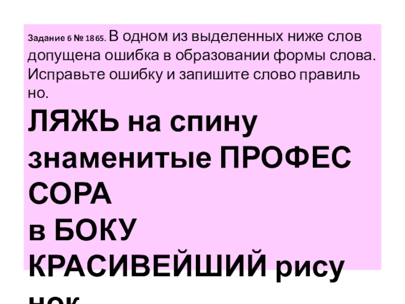 Слайд 41Задание 6 № 1865. В одном из выделенных ниже слов допущена ошибка в образовании