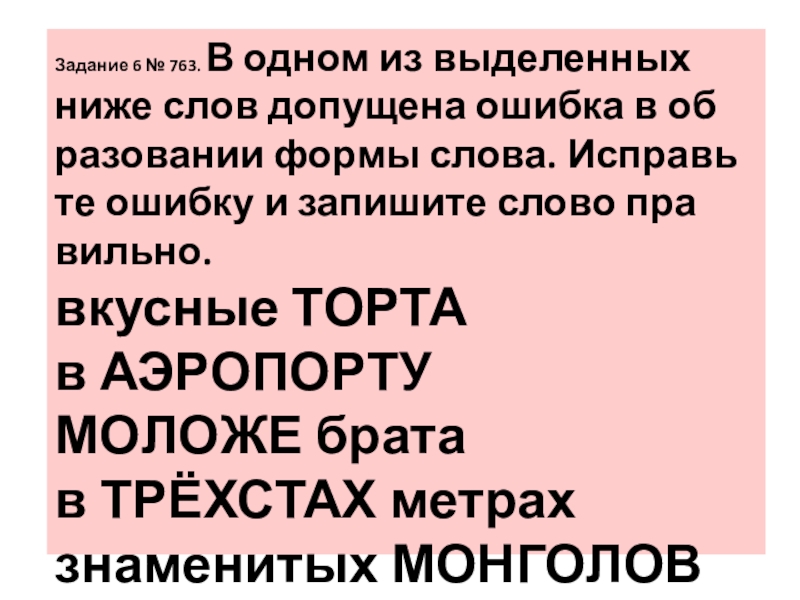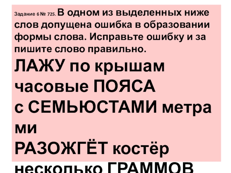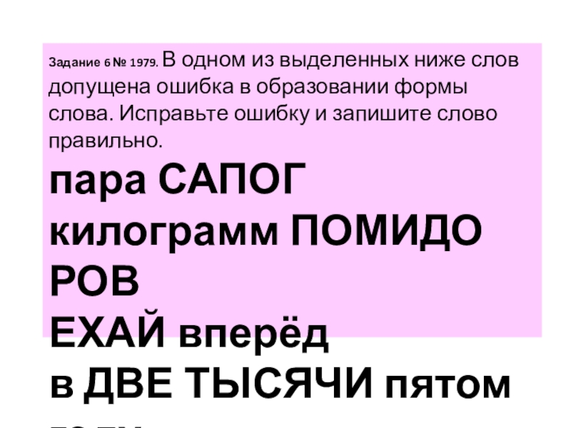 Слайд 44Задание 6 № 1979. В одном из выделенных ниже слов допущена ошибка в образовании