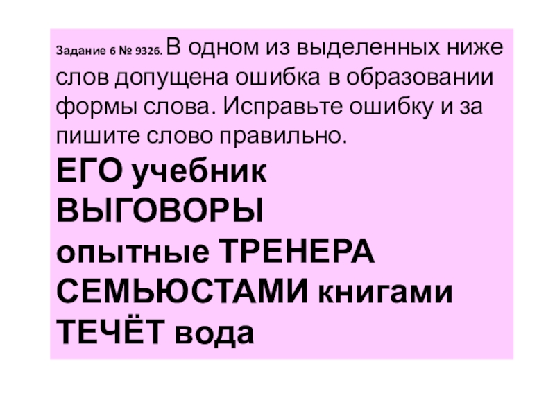 Слайд 45Задание 6 № 9326. В одном из выделенных ниже слов допущена ошибка в образовании