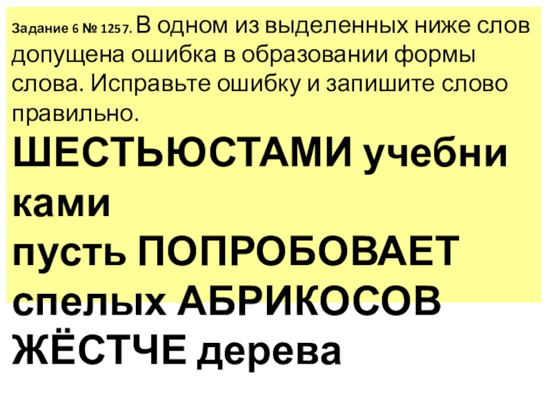 Слайд 33Задание 6 № 1257. В одном из выделенных ниже слов допущена ошибка в образовании