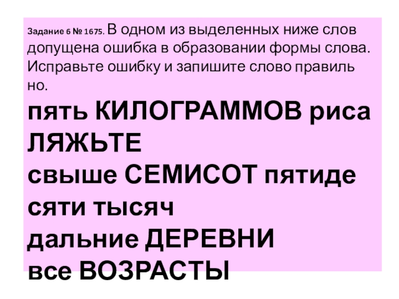 Слайд 36Задание 6 № 1675. В одном из выделенных ниже слов допущена ошибка в образовании