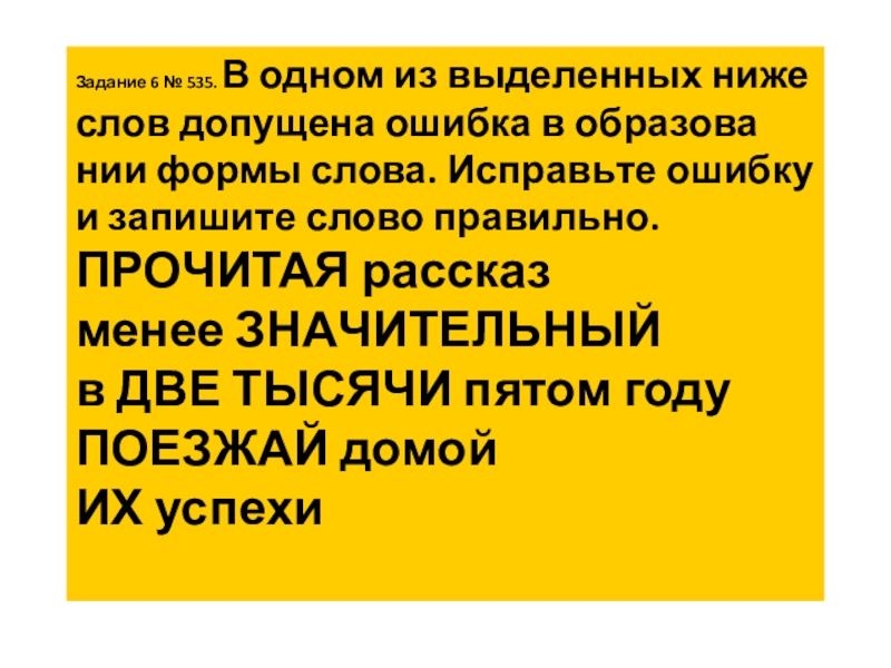 Слайд 14Задание 6 № 535. В одном из выделенных ниже слов допущена ошибка в образовании