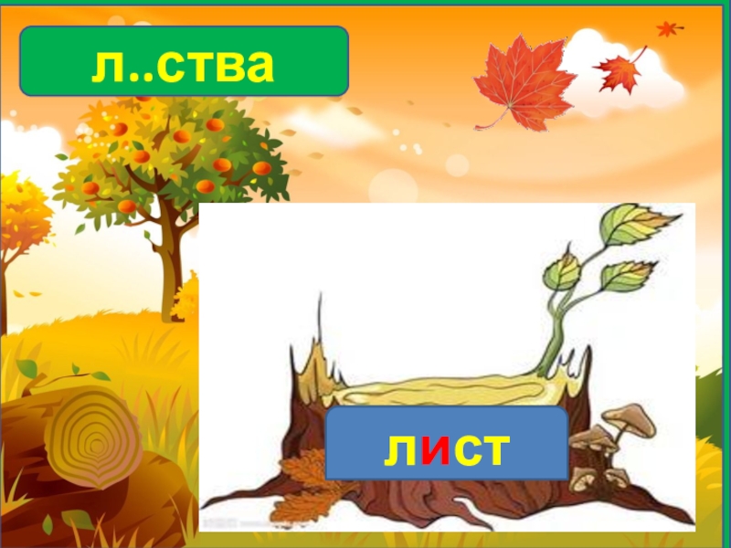 ..сенний ветер. Шумят в саду д..ревья.   С берёз и осин л..ства давно опала. З..мля покрыта  к..вром  из листьев. Только на дубах ж..лтеют сухие листья.  Т..шина в л..су.  Вдруг донеслась в..сёлая песня. Я огл..нулся. На берегу речки с..дела птичка. Это запела синичка.