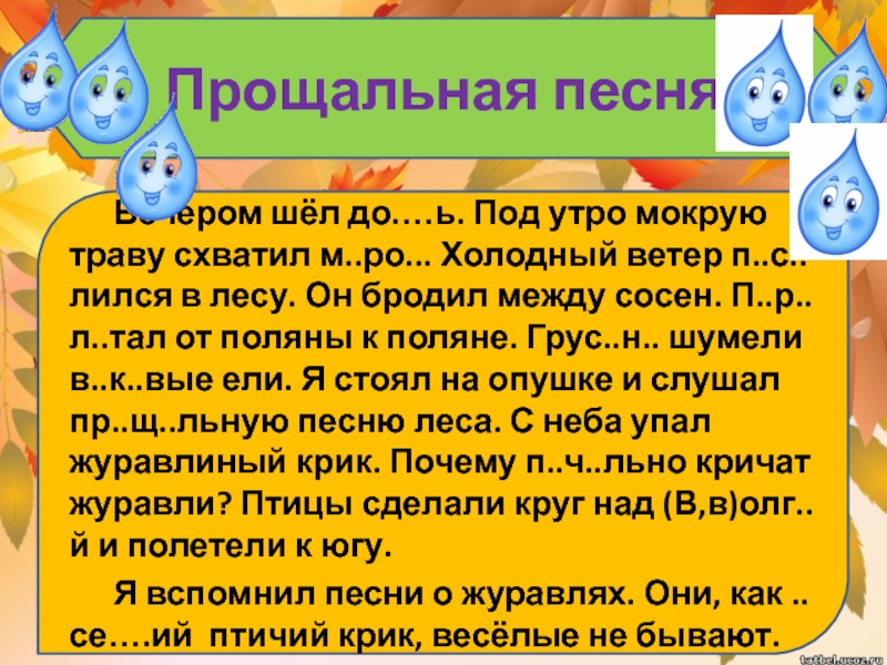 Презентация, доклад на тему Тренажер к диктанту Прощальная песня. 3 класс. 1 четверть.