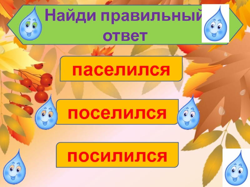 Найди правильный ответпоселилсяпосилилсяпаселился