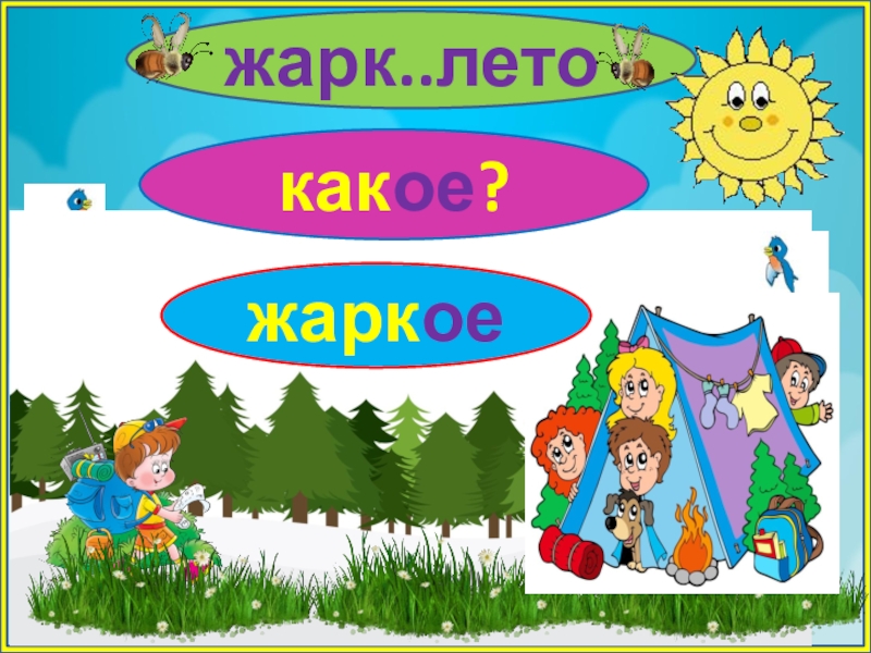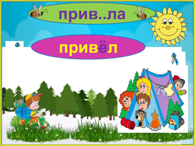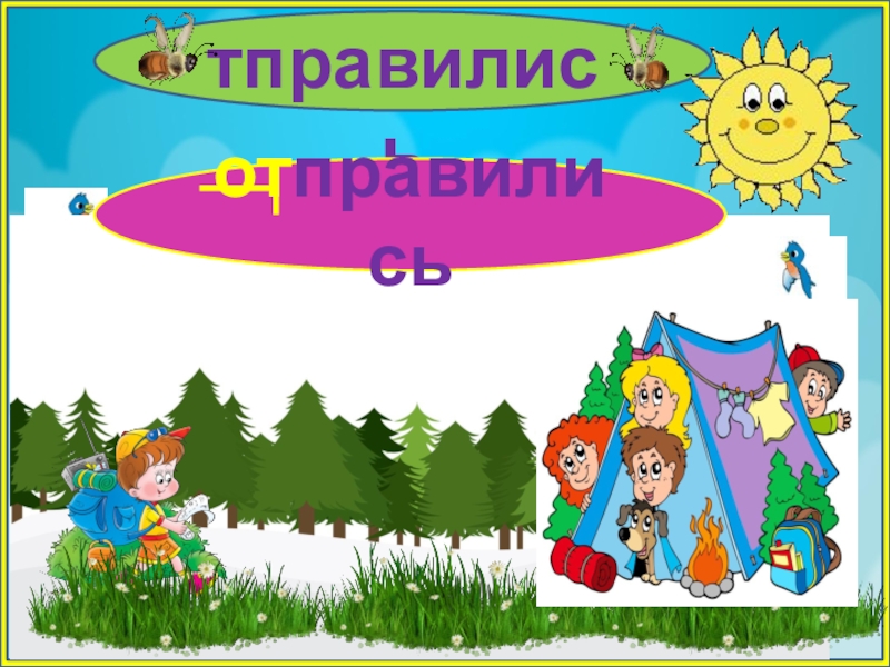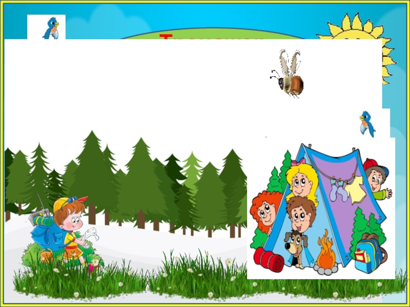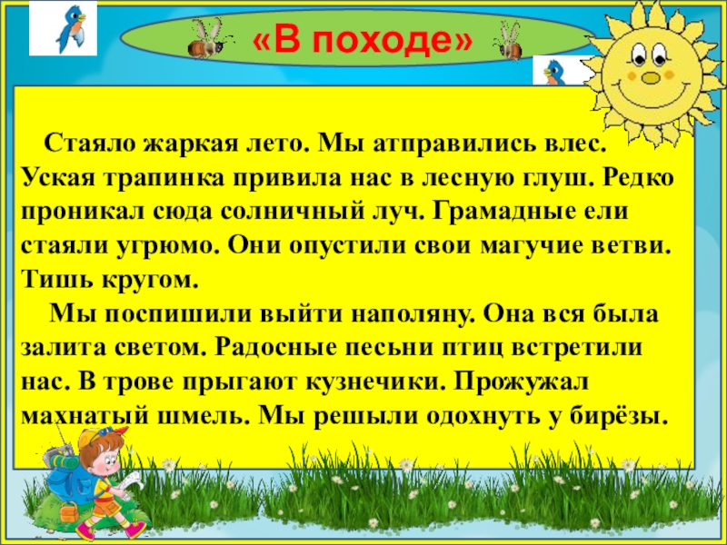 «В походе»   Стаяло жаркая лето. Мы атправились влес. Уская трапинка привила нас в лесную