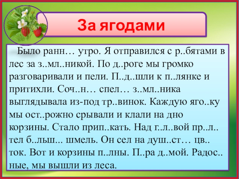 Презентация, доклад на тему Тренажер к диктанту За ягодами. 3 класс. 1 четверть.
