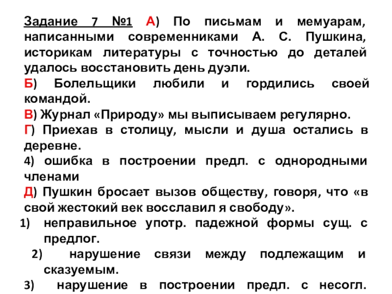 Слайд 9Задание 7 №1 А) По письмам и мемуарам, написанными современниками А.