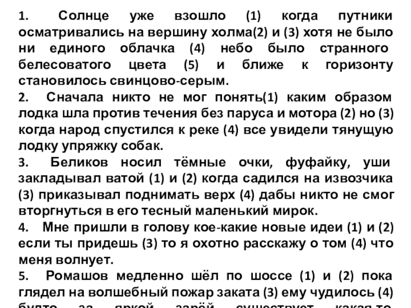 Слайд 111. Солнце уже взошло (1) когда путники осматривались на вершину холма(2)