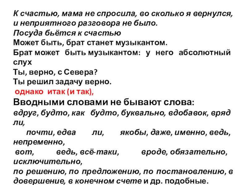 вдруг, будто, как будто, буквально, вдобавок, вряд ли,