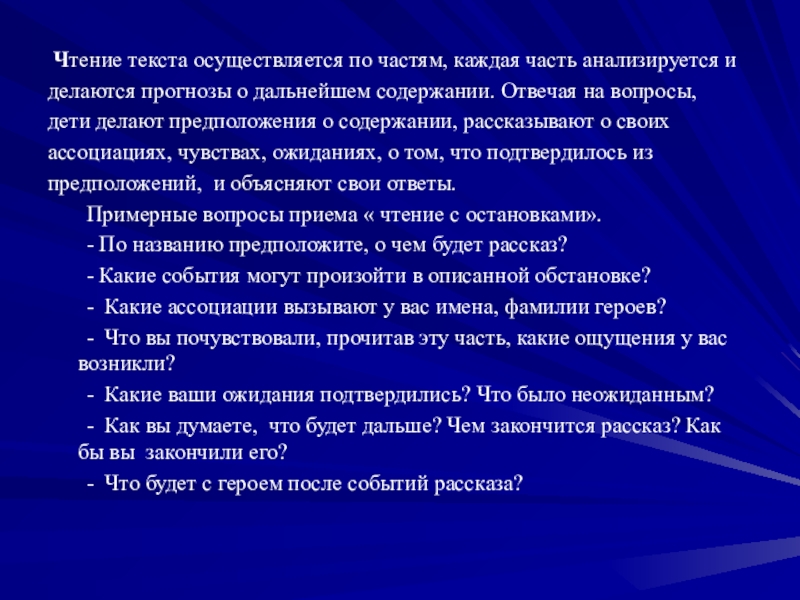 Чтение текста осуществляется по частям, каждая часть анализируется и