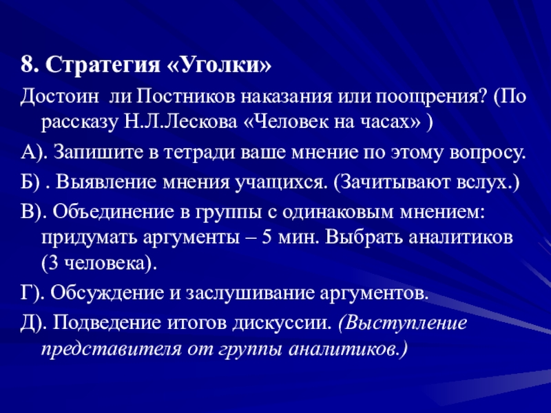 Достоин ли Постников наказания или поощрения? (По рассказу