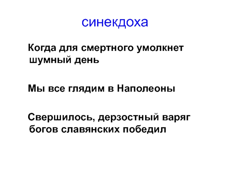 синекдоха   Когда для смертного умолкнет шумный день   Мы все глядим в Наполеоны
