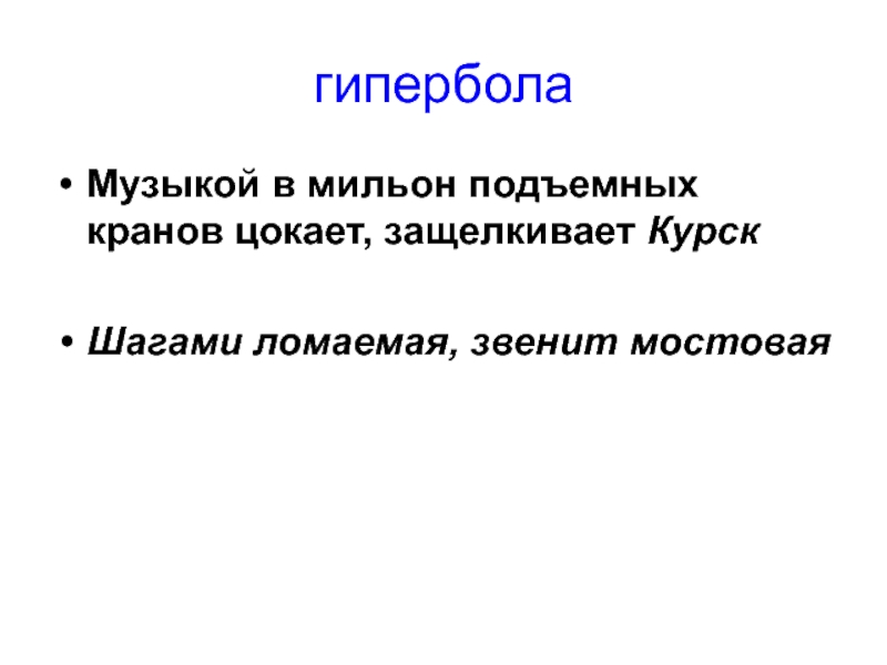 гиперболаМузыкой в мильон подъемных кранов цокает, защелкивает КурскШагами ломаемая, звенит мостовая