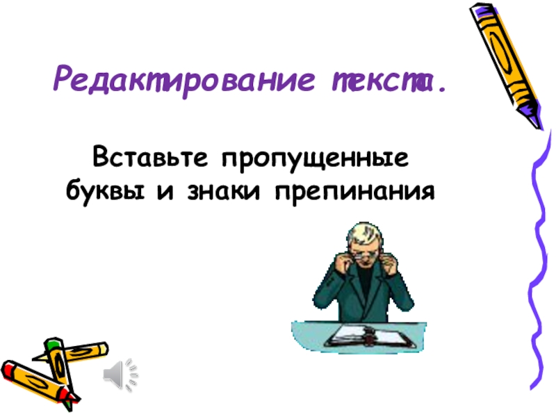 Слайд 13Редактирование текста. Вставьте пропущенные буквы и знаки препинания