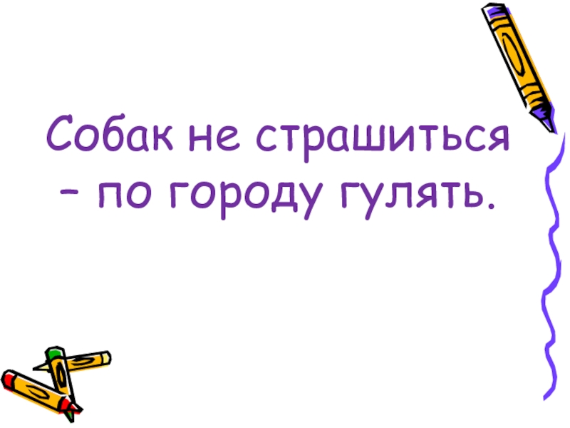 Слайд 11Собак не страшиться – по городу гулять.