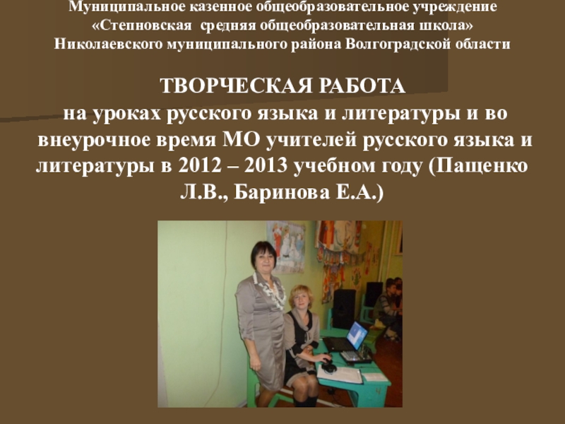 на уроках русского языка и литературы и во внеурочное время МО учителей русского языка и литературы в 2012 – 2013 учебном году (Пащенко Л.В., Баринова Е.А.)